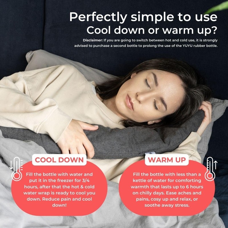 - ❗️Note: If you are going to switch between hot and cold use, it is strongly advised to purchase a second bottle to prolong the use of the YUYU rubber bottle.
