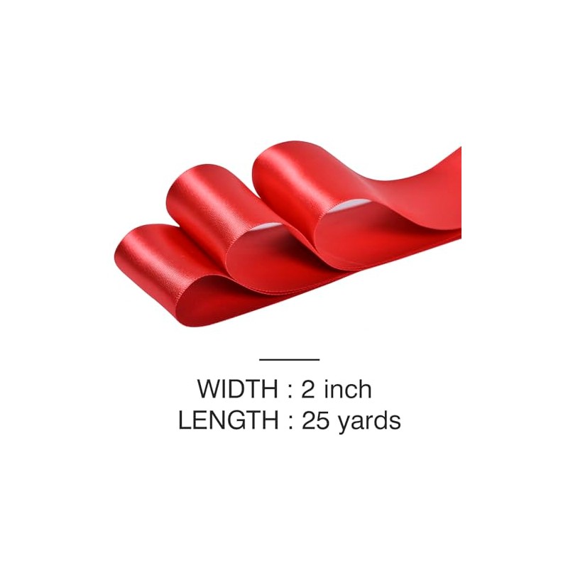 Ribest Red Double Faced Satin Ribbon, 2 Inch 25 Yard Ribbon for Crafts Gift Wrapping Bows Wedding Party Decoration Bouquet