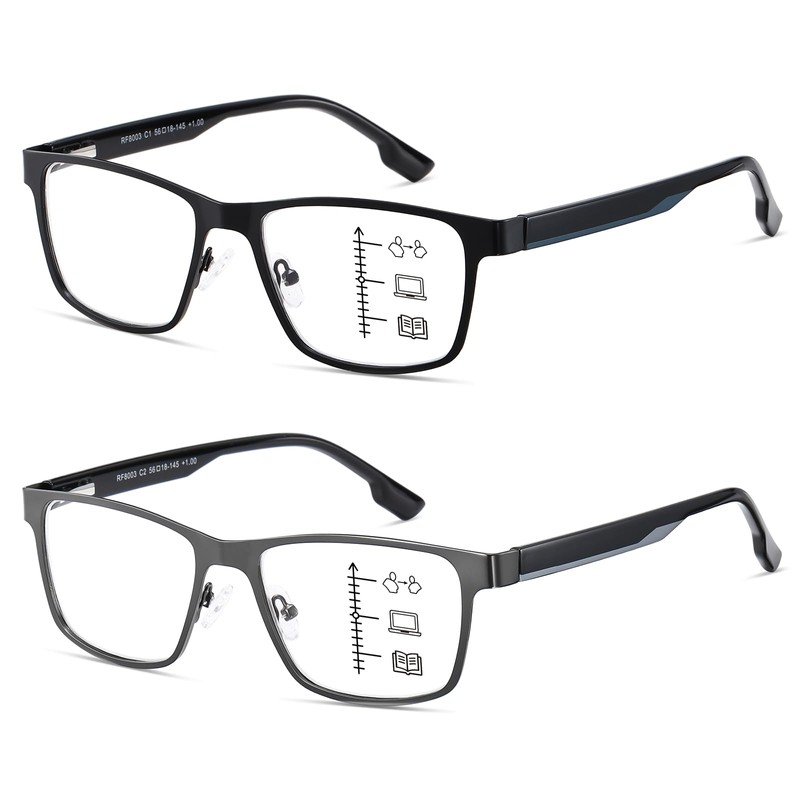 - 【Ricafirla Multifocal Reading Glasses Service】Please feel free to contact us if there is any problem with progressive multifocus reading glasses, and we will provide you a satisfactory solution without hesitation. You will receive men’s full metal frame multifocal transition reading glasses*2 (Black & Gun), quality reading glasses pouch*2. Multifocal progressive reading glasses meet all your needs and make an ideal gift for your friends, family, and yourself this year.