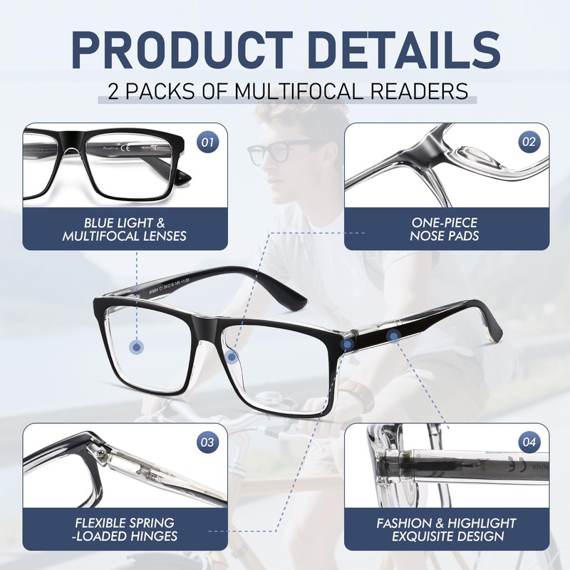 • 【Ricafirla Multifocal Reading Glasses Service】Please feel free to contact us if there is any problem with progressive multifocus reading glasses, and we will provide you with a satisfactory solution without hesitation. You will receive men’s full clear frame multifocal transition reading glasses*2 (Black & Grey), quality reading glasses pouch*2. Ready to see every moment clearly and comfortably? Grab yours today.