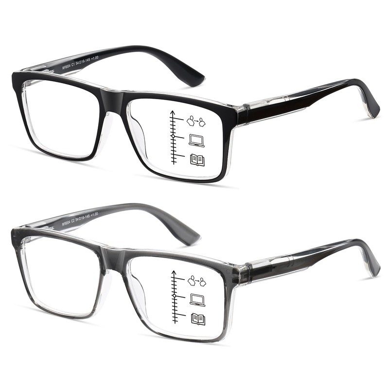 FEATURES 100% brand new and high quality progressive multifocal men multifocus reading glasses Anti blue light blocking multifocal transitional readers, protect your eyes Sturdy and durable spring Hinge, comfortable fit small face and large head Fashion cheaters and designer reading glasses makes you to be better SPECIFICATION Item: Progressive multifocus multifocal transition reading glasses men Gender: Men Frames Materials: PC Lens Materials: HD transparent polycarbonate Magnification Strengths Available: +1.0/+1.25/+1.5/+1.75/+2.0/+2.5/+3.0 Frame Width: 139.5mm/5.49 " Lens Width: 54mm/2.13" Lens Height: 44mm/ 1.73" Bridge Width: 16mm/ 0.63" Temple Length: 145mm/5.71" PACKAGE 2 x Metal Progressive Multifocal Reading Glasses (Black &Grey) 2 x Microfiber Reading Glasses Pouch 1 x Beautiful Reading Glasses Case TIPS To avoid damage, please don't clean your eyeglasses with paper towels or clothing or alcohol, and also avoid using household detergents or soaps. While a few mild soaps don't harm lenses, today's extra strength soaps are powerful enough to slowly disintegrate lens coatings. ABOUT US People use electronic products more and more time, the intensity of using eyes has promoted the speed of presbyopia. Those presbyopic glasses should not be labeled as aging, or even cause fear and helplessness because they need to be worn. It would be better to use creative color combinations and novel and beautiful shapes to design our reading glasses, making it a fashion item to weaken the word "presbyopia" to bring us worry about age. So we created the "Ricafirla", which has been recognized by customers in terms of quality, fashion, and comfort. Ricafirla multifocal brings you multifocal reading glasses in a variety of styles. If you need help seeing both up-close and far away, our multifocus transition reading glasses with clear lenses will help you see clearly at any distance.