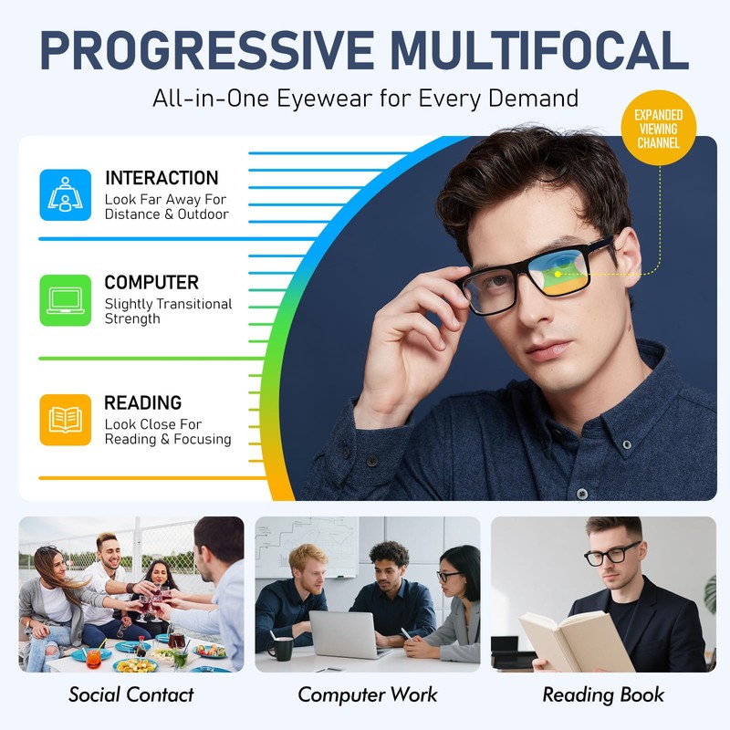 • 【Upgraded Progressive Multifocal Reading Glasses】Your eyes deserve better—meet Ricafirla’s upgraded multifocals readers, crafted after years of research. Ditch old lenses that leave you dizzy or squinting. With a 20% larger viewing area and smoother transitions, your eyes adjust effortlessly. Wear them nonstop: from morning chats to late-night reading. No more taking them off—just clear, comfortable vision, always.