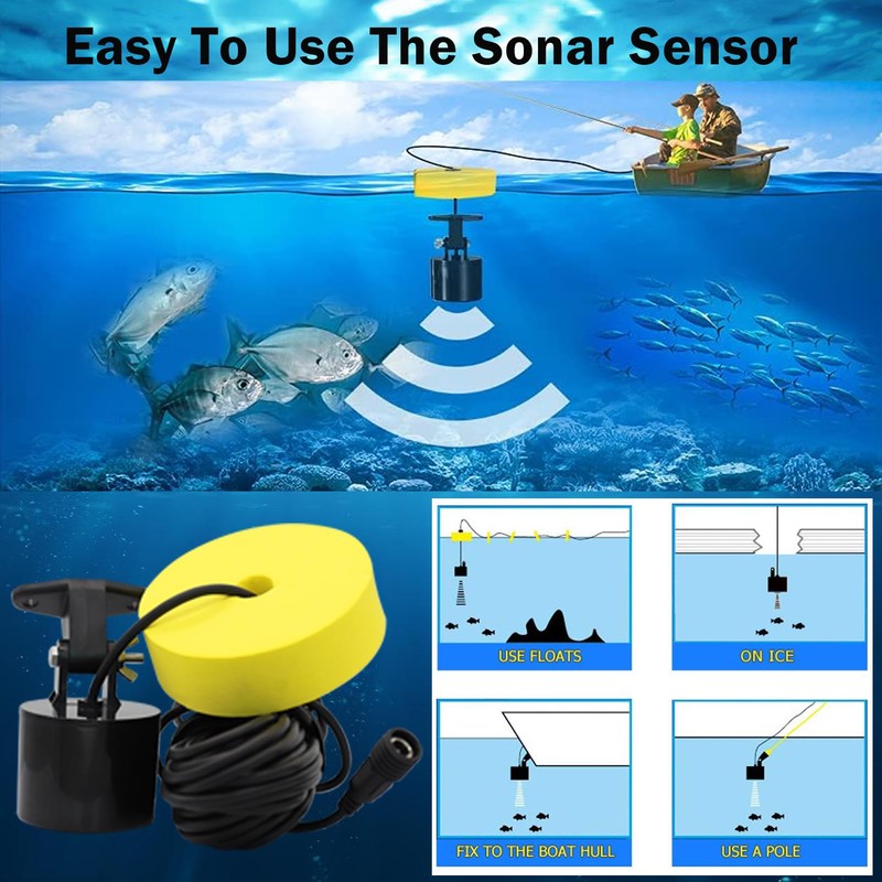 - 【Package Included】1. Fish Finder Display 2. Sonar Sensor (Transducer) with 25ft cable 3. Removable Transducer Float with Rubber Stopper 4.Transducer Side-Scan Adapter 5. Stainless Bolt and Wing Nut 6.Neck Strap 7.Operation Manual.