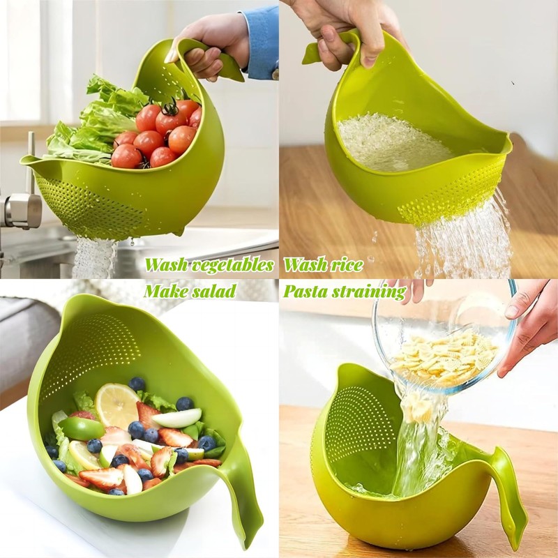 Rice Washer Strainer Bowl - 4-in-1 Washing Bowl for Quinoa,Food Strainer and Colanders Set for Kitchen,Suitable for Fruit and Veggie Washer Kitchen Gadgets Swan Drain Basket With Handle(3 Pack Green)