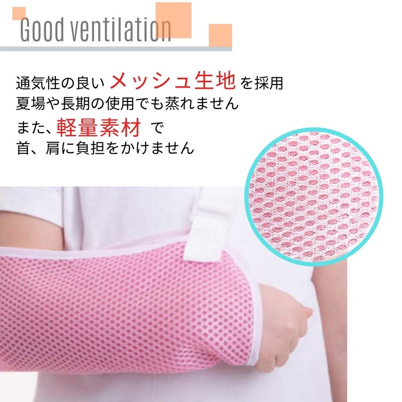 RICHAIR 子供用 腕つりサポーター アームホルダー サイズ調整ベルト付き 通気良好メッシュ ギブスカバー 骨折 脱臼 ねんざ しっかり固定 (ピンク, S)