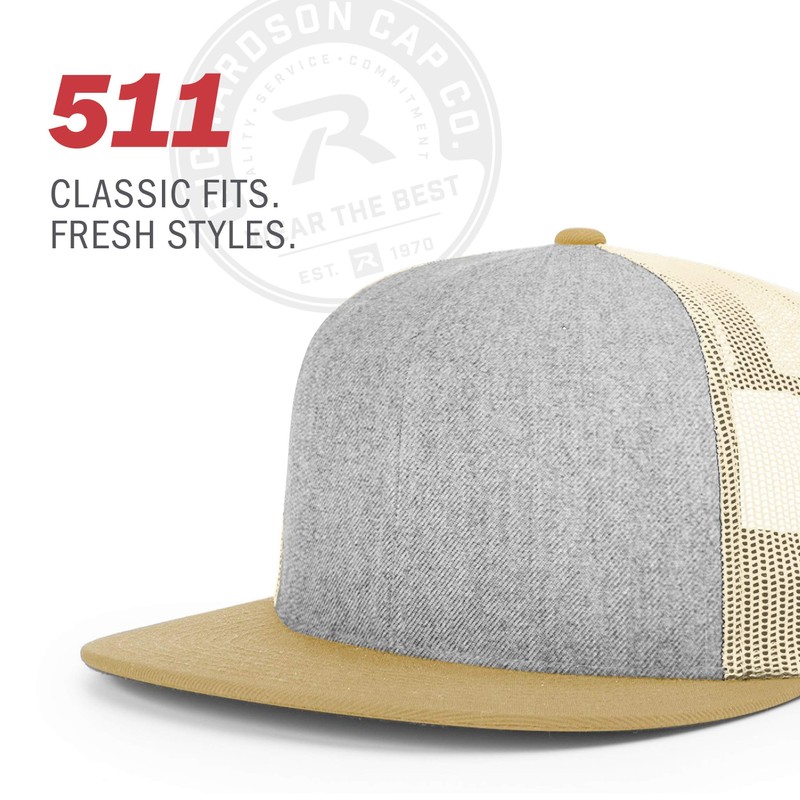 Richardson Unisex 511 Flatbill Trucker Adjustable Snapback Baseball Cap, Soli...