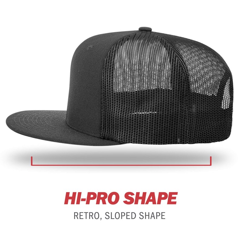 Richardson Unisex 511 Flatbill Trucker Adjustable Snapback Baseball Cap, Solid Black, One Size Fits Most