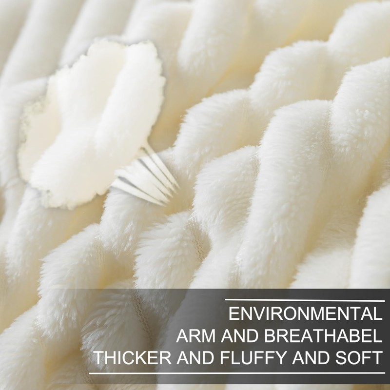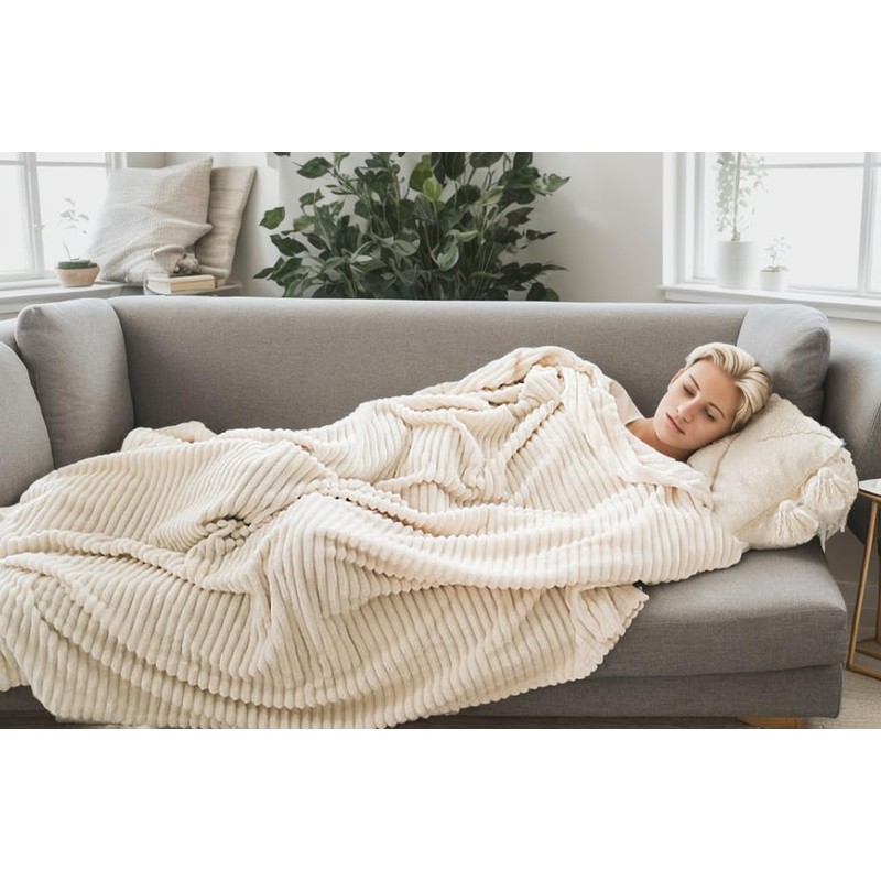 Richave Cuddly Blanket,Premium Lightweight Anti-Static Fluffy Fleece Travel Throw, Blanket with Striped Pattern, 50x60 Inches, Cream
