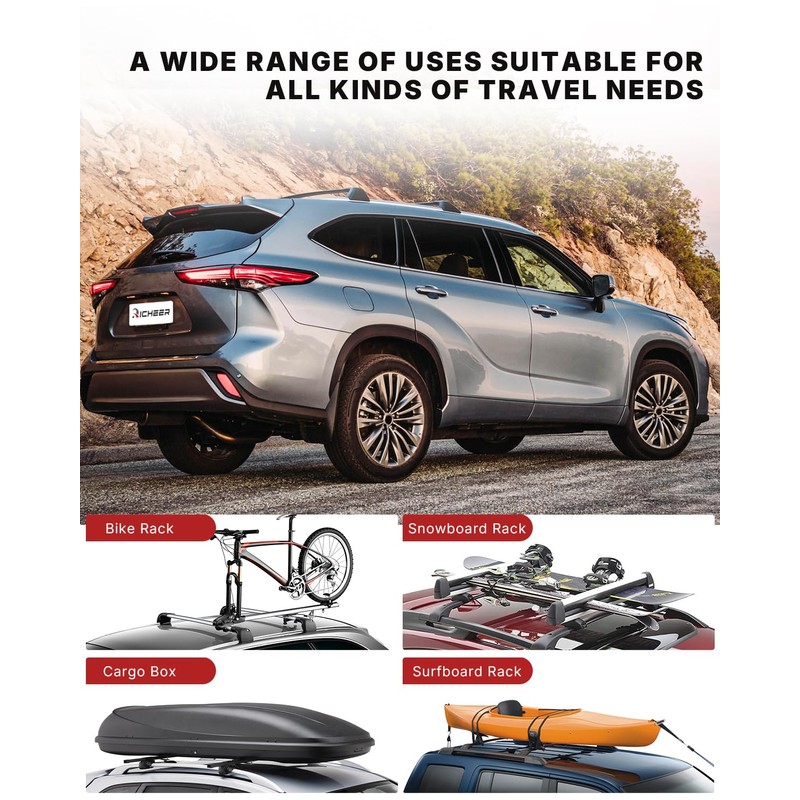 Richeer 260LBS Roof Rack Cross Bars for 2020-2025 Highlander XLE XSE Limited Platinum Hybrid with Side Rails, Heavy Duty Aluminum Cargo Racks Rooftop Luggage Canoe Kayak Bicycle roof Bag