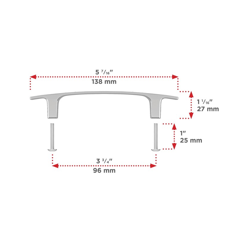 - Center to Center measurement (distance between the drill holes): 3 25/32 in (96 mm)