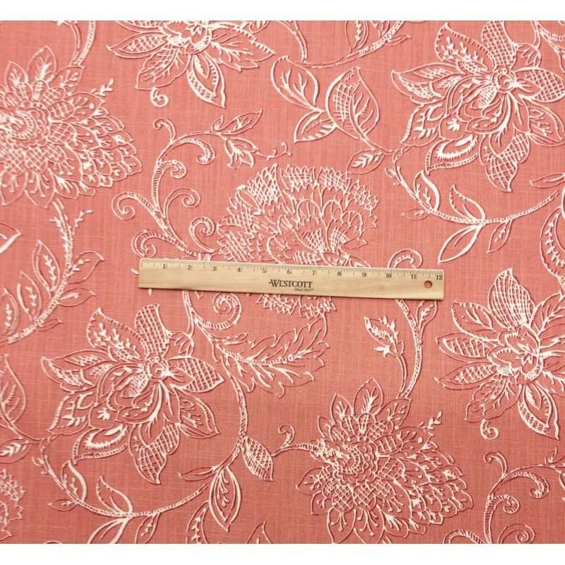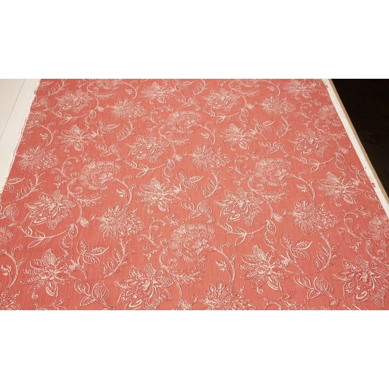 RICHLOOM BENSON CORAL RED WHITE FLORAL LINEN LIKE MULTIUSE FABRIC BY YARD 54"W