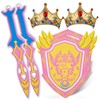 - Product Dimensions: The foam princess’ sword boasts a length of 17.5 inches, the pink shield measures 13 X 12 inches with a handle on the back, and the adjustable crown features a elastic band. The pretend toy weapons set arrives in a box, an ideal gift for birthday parties, holidays, or any special occasion