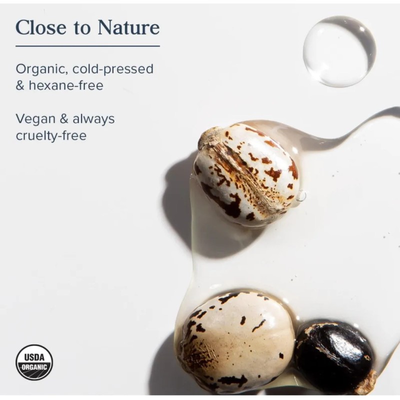 Aceite prensado en frío ideal para fortalecer cabello, cejas, pestañas, barba y uñas. Hidrata profundamente la piel y viene en frasco de vidrio ámbar para conservar su pureza y efectividad.