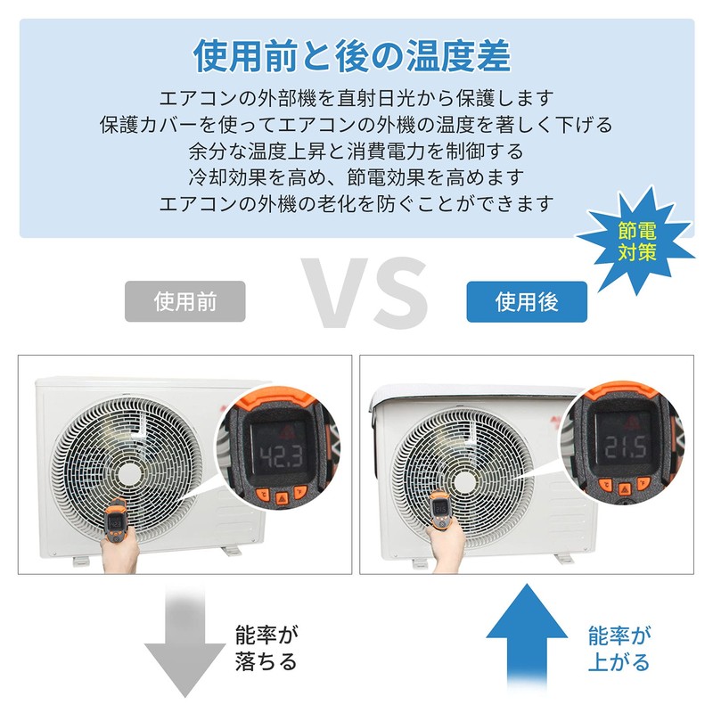 This product uses light-reflective material to cut heat rays by about 40%, reducing the burden of the outdoor unit while cooling is driving. Protects your outdoor unit from direct sunlight and helps to improve cooling efficiency. Eco-? This is an excellent product that can save energy.
