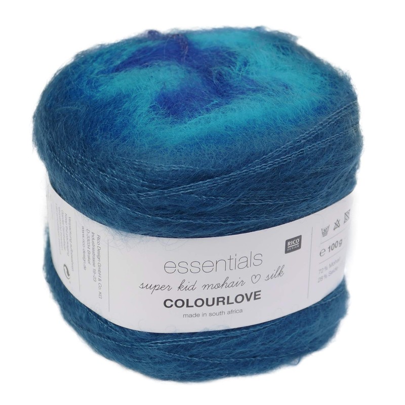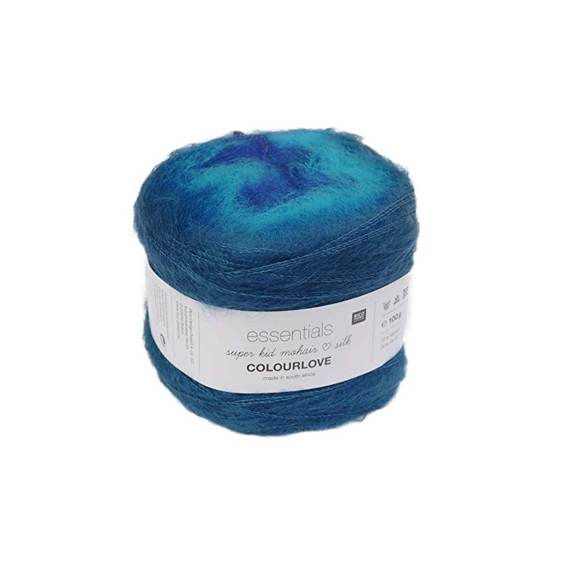 Rico Design Colourlove Super Kid Mohair Silk Gradient Yarn, Bobbel, Colour: Blue/Turquoise