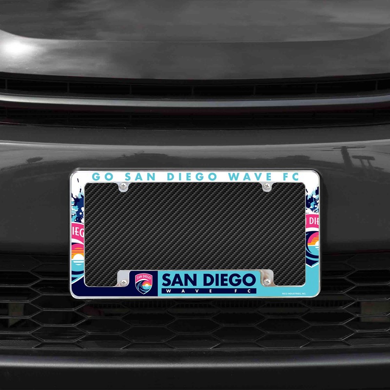 Rico Industries NWSL San Diego Wave FC 12" x 6" Chrome All Over Automotive License Plate Frame for Car/Truck/SUV