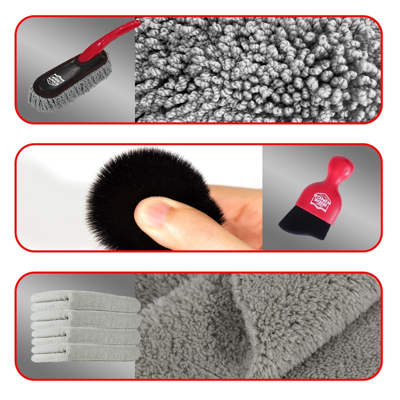 RIDE KINGS Car Detailing Kit Cleaning Supplies (3 Packs)|Car Duster Interior-Car Cleaning Brush-Microfiber Towels for Car |Detailing Tools