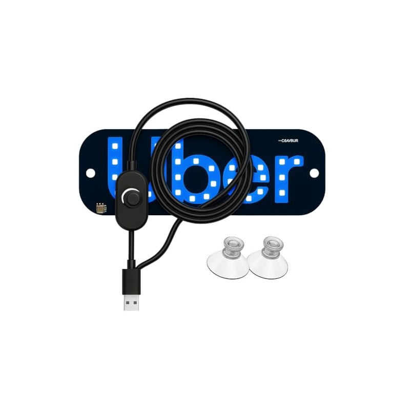 Rideshare Windshield LED Light with Blue Decal & USB Touch Dimmer (Blue)