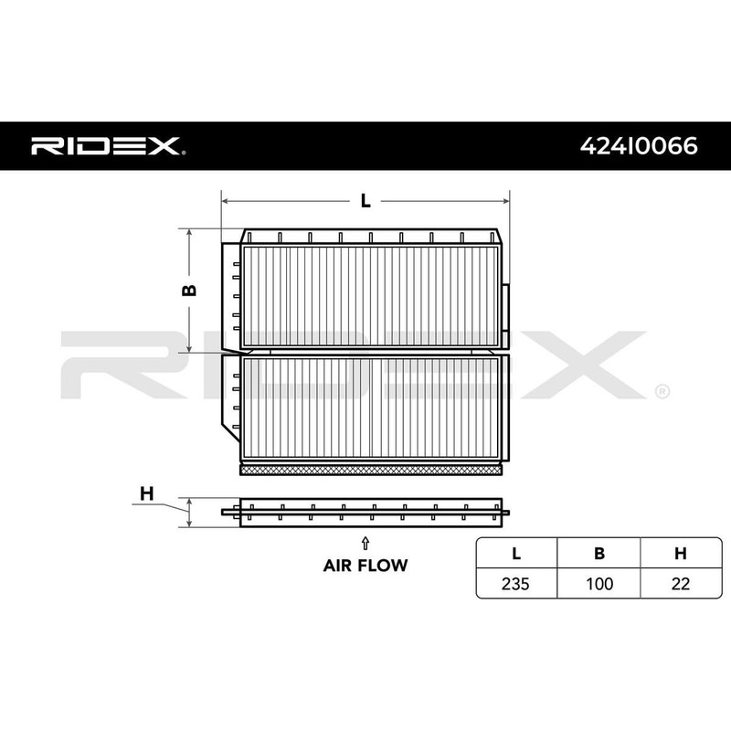 - The intelligent design of the RIDEX cabin filter ensures low air resistance without compromising its cleaning properties.