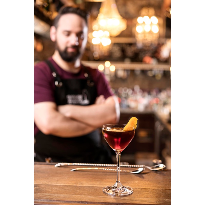 • This innovative Nick & Nora cocktail glass makes it possible to Savour the drink effortlessly and elegantly by delivering it perfectly to the mid-palate, so that you do not need to tilt your head back.