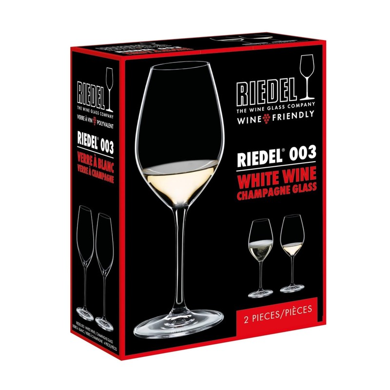 - Bundle Includes: 3 x Riedel Wine Friendly White Wine/Champagne Wine Glasses (2-Pack), Large Microfiber Polishing Cloth, Drink Grip Wine Bottle Holder (Red)