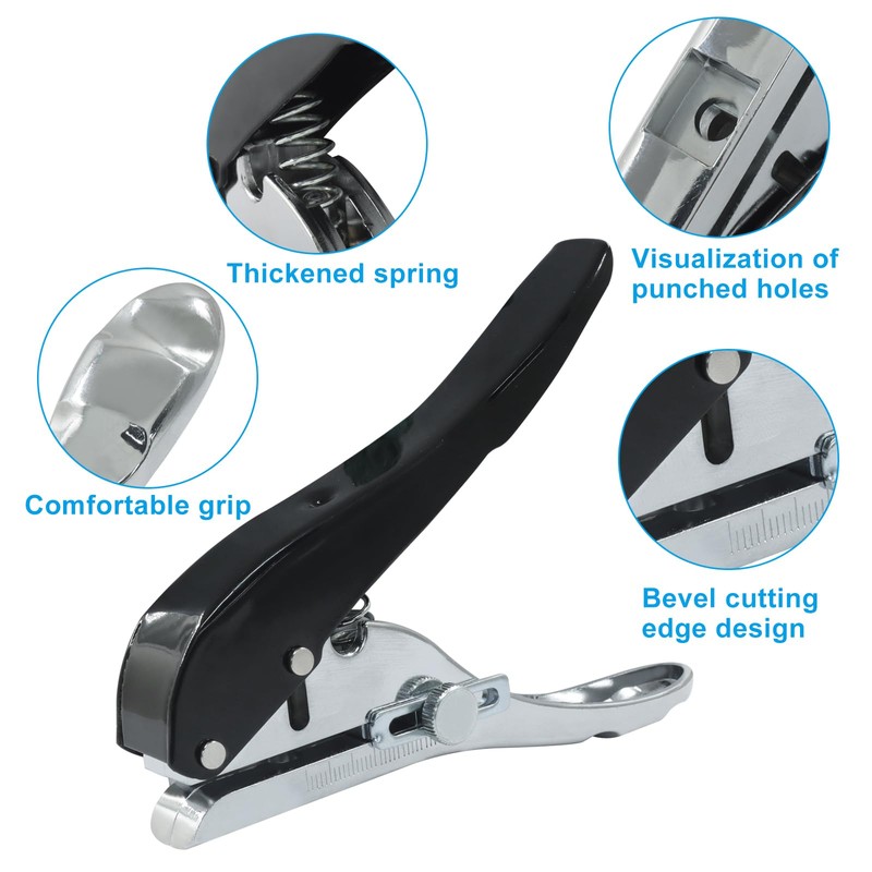 - [ High quality ] Made from premium metal with a sleek black finish, this single hole punch combines functionality with style. The heat-treated punching mechanism ensures smooth, clean holes every time, while the durable guarantees long-lasting performance.