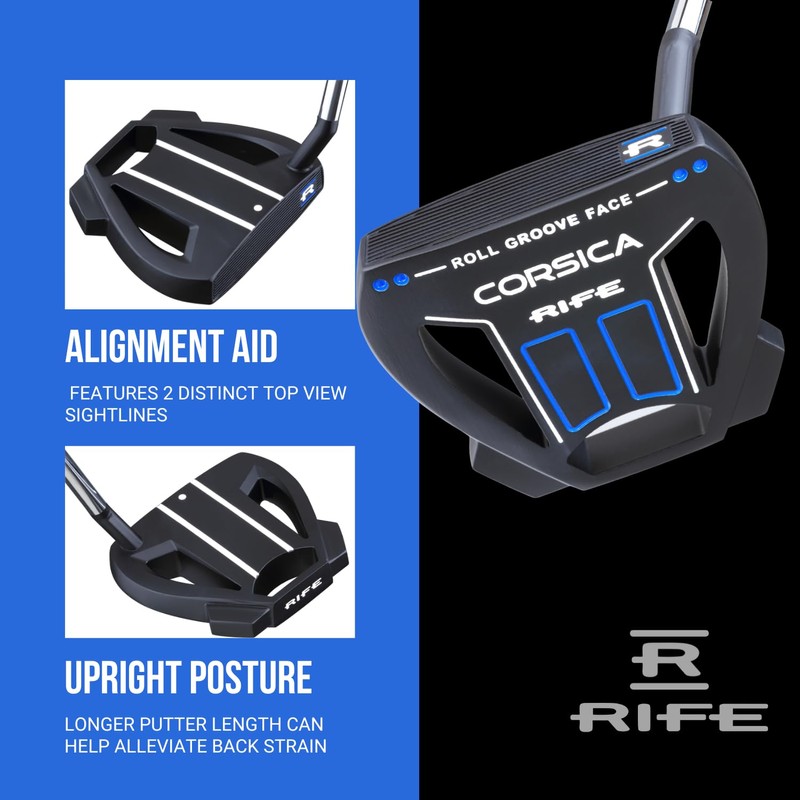 Rife Corisca Putter features increased forgiveness, sight line alignments, and improved distance control to help enhance your confidence in putting.