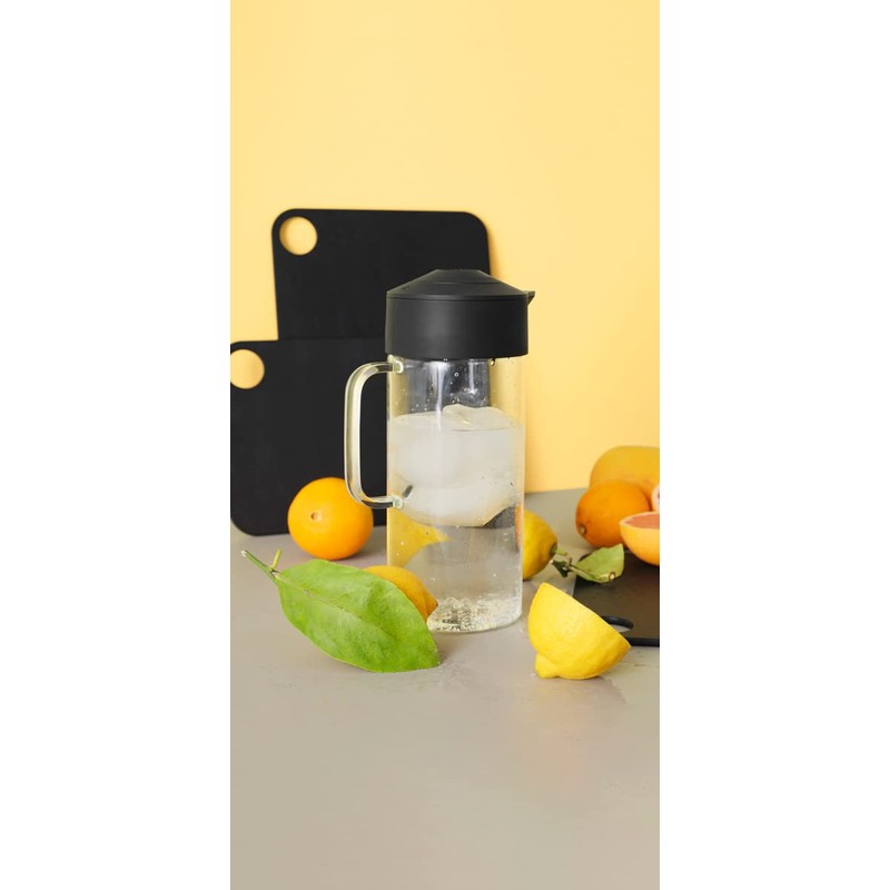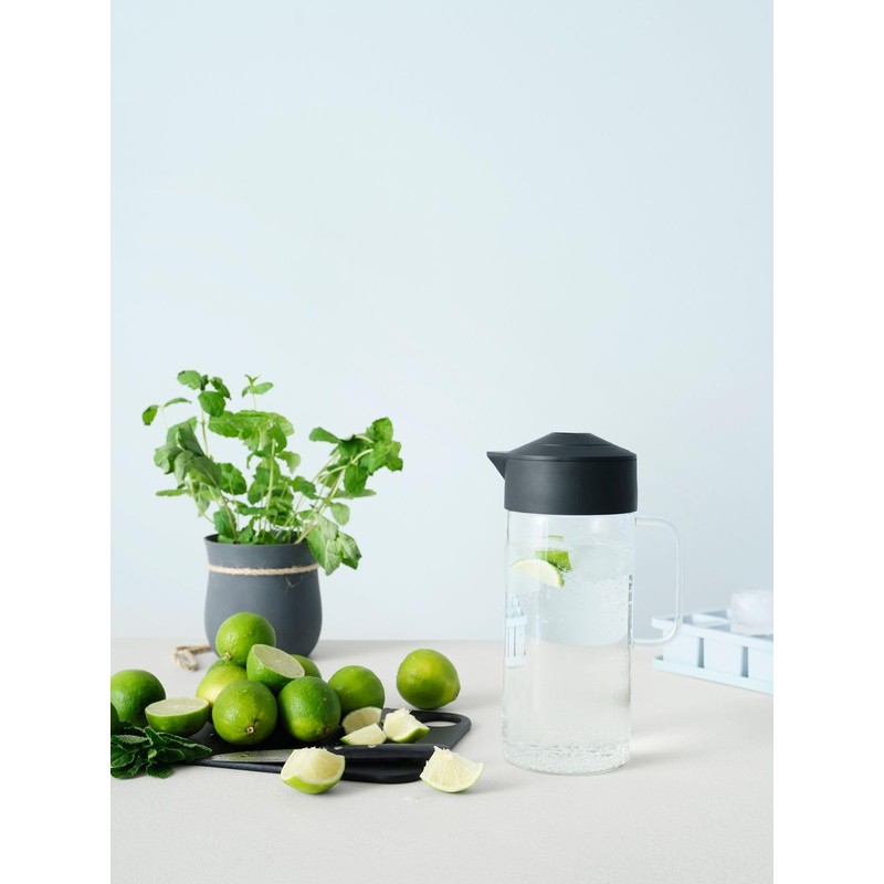 "The PIP serving pot for water and other cold drinks is designed to be easy to open and close with one hand. The functionality of the lid construction originates in origami art. A process by which the designer Søren Refsgaard is often inspired in his first stages of design. The shape of the spout and the movement of the opening/closing function are reminiscent of the beak of a hungry bird, hence the slightly humorous name PIP (Danish for chirping). The PIP serving pot fits perfectly behind almost any fridge door. Use the jug for water or juice so you can always store your favorite beverage in the fridge and place it directly on the table. With its 1.4 litre capacity, it offers enough space for the whole family."