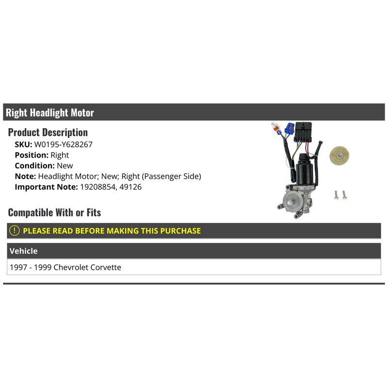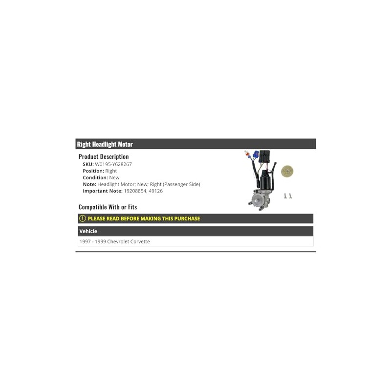 Right Passenger Side Headlight Motor - Compatible with 1997-1999 Chevy Corvette