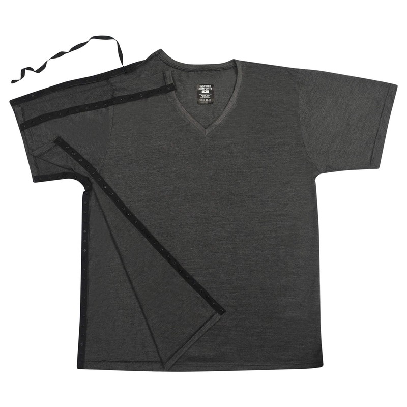 - CLASSIC T STYLE combined with DISCREET HIDDEN and LIGHTWEIGHT easy-to-open REINFORCED snaps on the RIGHT side (shoulder and side), AVOID bulky hospital gowns, ill-fitting baggy shirts or shirts with visible zips/buttons