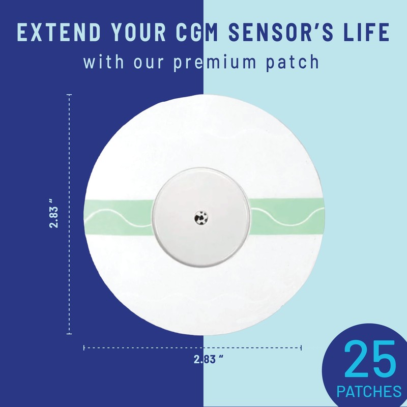 - PROTECTS SENSORS. No more wasted sensors. Moisture-resistant material resists sweat, water, and humidity when applied with proper skin preparation. Pre-Cut patch with no hole measures 2.83" x 2.83" and is compatible with Abbott Freestyle Libre, Dexcom G7, and similarly sized sensors. Bag of 25
