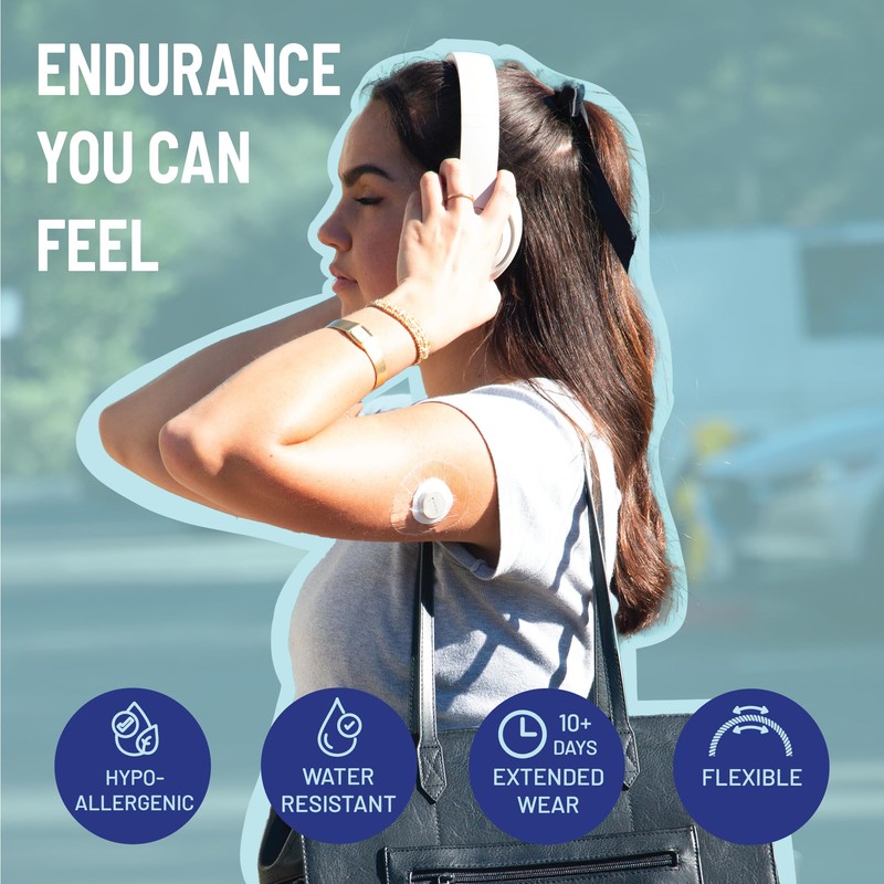 - NO SKIN IRRITATION. The sensor patch material is latex-free, extremely water resistant, and hypo-allergenic for all ages. With proper application and removal, never worry about itch or discomfort. Holds fast during exercise, swimming, showering, and everyday activities