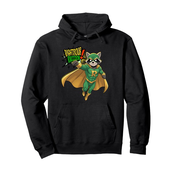 'Righteous Raccoon Superhero s Retro Comic Strip Pullover Hoodie