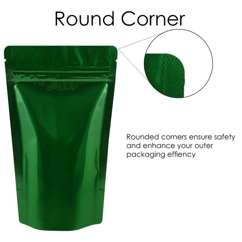 - ELEGANT LOOK: The green shiny finish stand up pouches are lightweight, easy to re-pack, and come in a variety of storage capacities. The pouches are green in colour, making them ideal for pasting logos and marketing strategy. It comes in a variety of sizes and has an eye-catching shiny finish.