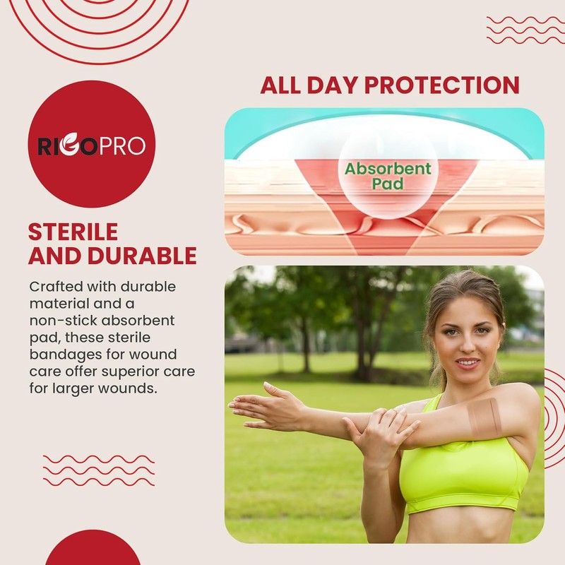 RIGO PRO Extra Large Sheer Bandages 50 Count | Hypoallergenic | 3 x 4 Inch Full Border | Sterile | All Day Comfortable Protection | Breathable Bandage for Covering Wounds