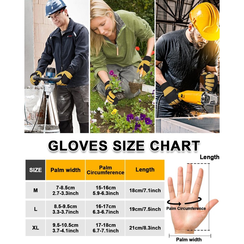 - Lightweight, versatile work gloves: Our gloves are designed for multiple scenarios, whether gardening, woodworking, construction sites, car repairs, operating heavy equipment or gardening, they master everything effortlessly. They combine versatility with lightweight comfort and offer users complete protection and comfort. In addition, we offer a 363-day unconditional return and exchange service, so you can shop worry-free.