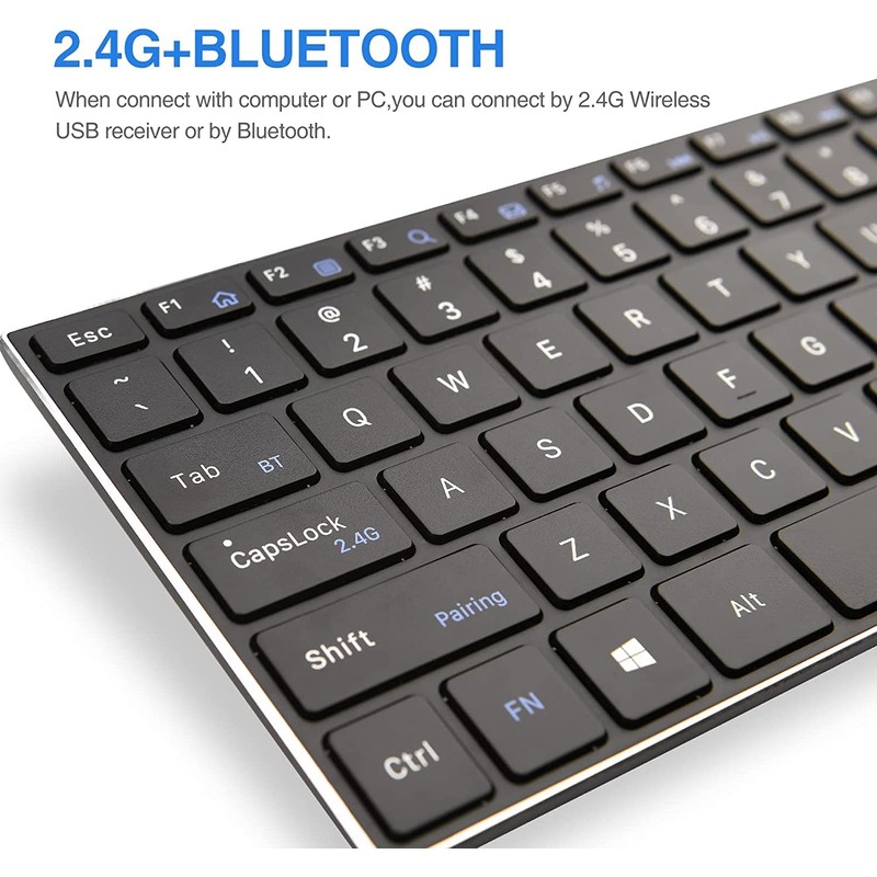 - Easy-switch stable Bluetooth & multi-device connection: Connect up to 2 devices simultaneously and switch between them easily. the Bluetooth and 2.4G Wireless keyboard will keep your desktop clutter-free
