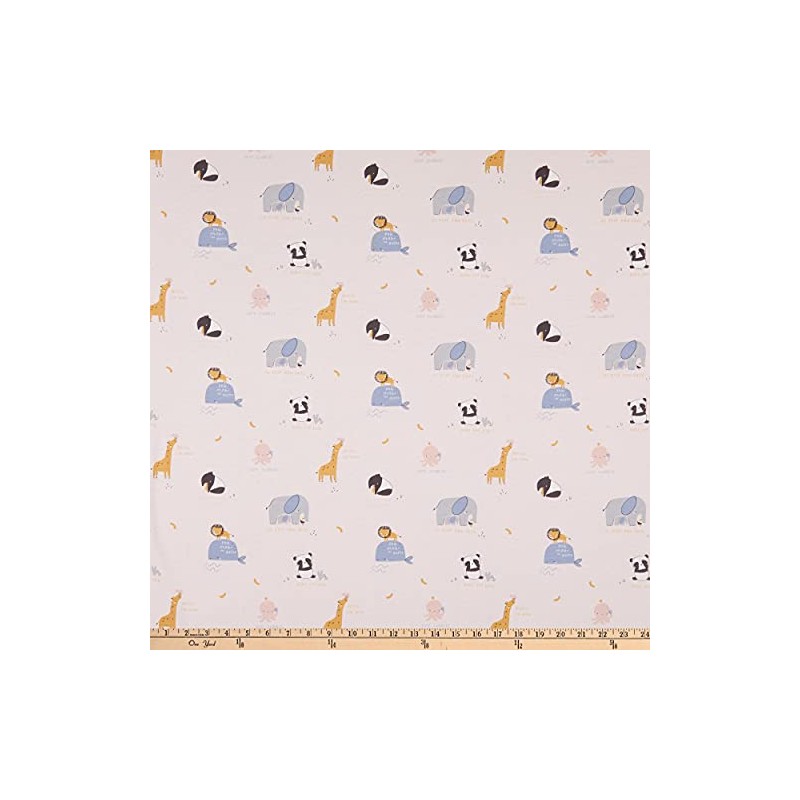 - This stretch cotton jersey knit fabric for Riley Blake Designs has a smooth hand and about a 50% four way stretch for added comfort and ease. It is perfect for making t-shirts, loungewear, yoga pants and leggings. This print features pandas, giraffes, lions, whales, elephants, aardvarks, and octopus.