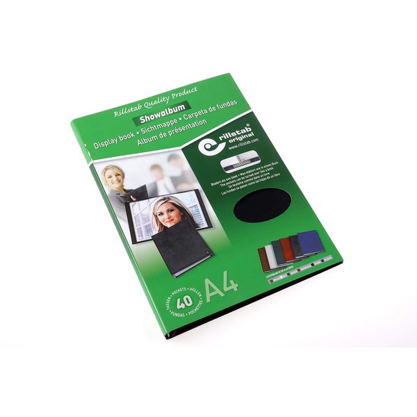 Rillstab Original Display Book (40 Transparent/Clear Pockets) | A4 Front Page Ring Binder Portfolio & Project Presentation Folder for Meetings & Conferences| Poly Clear Pocket Folder | Black | 99444