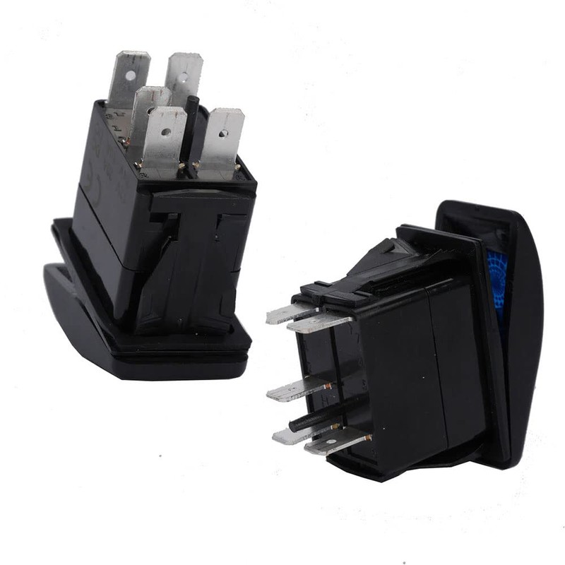 Riloer Car Spot Light Toggle Switch, 12V / 24V ABS ON-OFF 5 Pin Dash Dashboard Rocker Switch Button with Blue LED Light, for Car Motorcycle Boat RV Trailer Bus