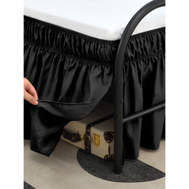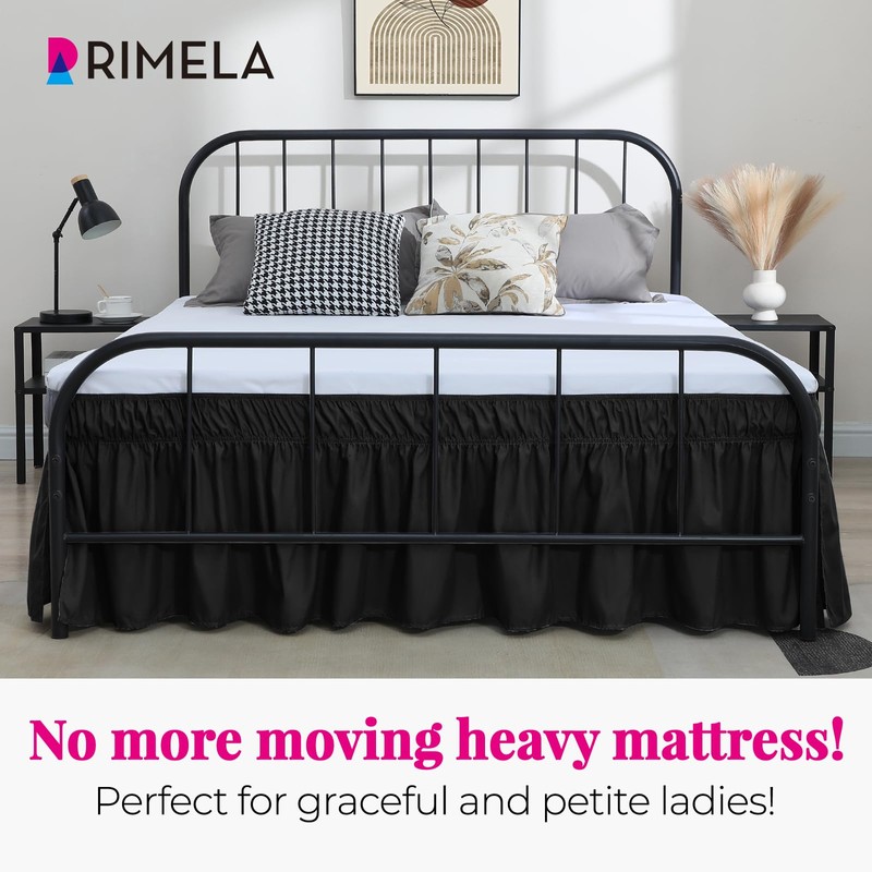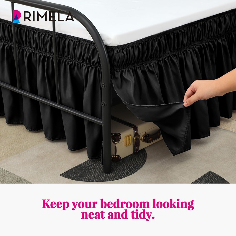 RIMELA Black Bed Skirt King Size 15 Inch Drop Split Corners, Wrap Around Elastic Bedskirt, Dust Ruffle for Adjustable Bed Base Machine Washable Easy to Install Bed Skirts