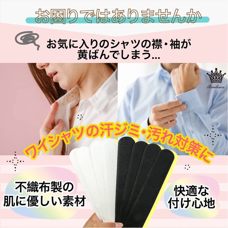 Set of 120 Disposable Sweat-Absorbing Pads, 2 Colors to Choose from: A set of sweat pads that can be attached to the forehead of a hat or shirt collar to prevent sweat from flowing. Disposable so you can always use it clean and economical Prevents sweat from entering your eyes: By attaching this sweat pad to your forehead, such as a helmet or hat, you can absorb sweat and shut it out. You can also use this sweat remover to protect your hat from sweat stains and dirt. For sweat stains and stains on your shirt: By attaching a sweat pad to the sleeve of your shirt to absorb sweat and prevent sweat stains and stains. Non-woven sweat pads are gentle on the skin and comfortable to wear and suitable for men and women of all ages. Can be cut to fit the size: The sweat pad can be easily cut with scissors to fit the size of your child's hat or dress shirt, etc. You can paste it according to your item (Product Specifications) Set Contents: Sweat pads 120 piece set. Color: Black. Size: Approx. 1.5 x 9.3 inches (3.7 x 23.5 cm). Material: Non-woven fabric. *Depending on your monitor settings, there may be slight differences in the appearance of the actual product.