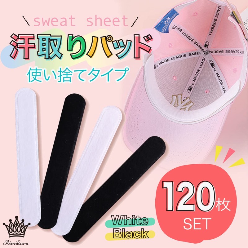 • Set of 120 Disposable Sweat-Absorbing Pads, 2 Colors to Choose from: A set of sweat pads that can be attached to the forehead of a hat or shirt collar to prevent sweat from flowing. Disposable so you can always use it clean and economical