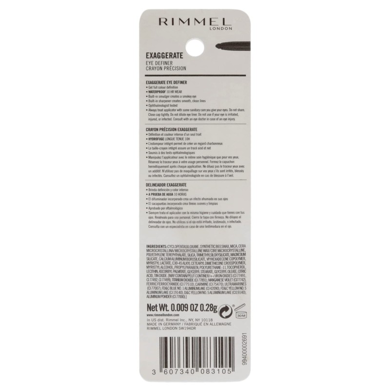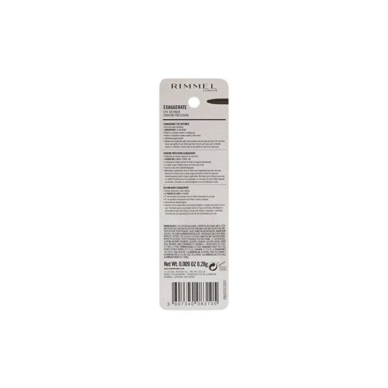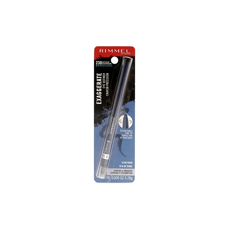 Rimmel London Exaggerate Waterproof Eye Definer Eyeliner, Highly Pigmented, Long-Wearing, Built-In Smudger, 230, Deep Ocean, 0.01oz
