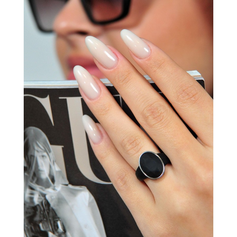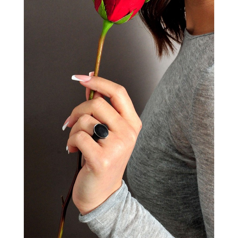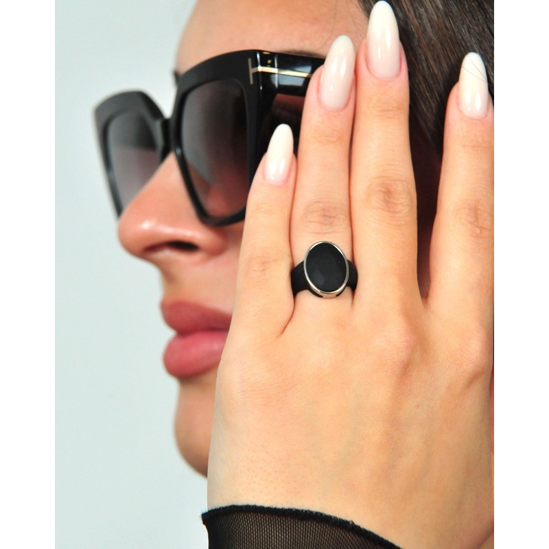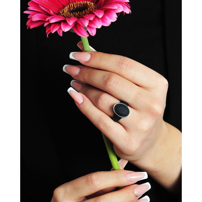 Rinfit Silicone Wedding Bands for Women - Rubber Wedding Band - Oversized Oval - Black/Metal Silver, Size 9