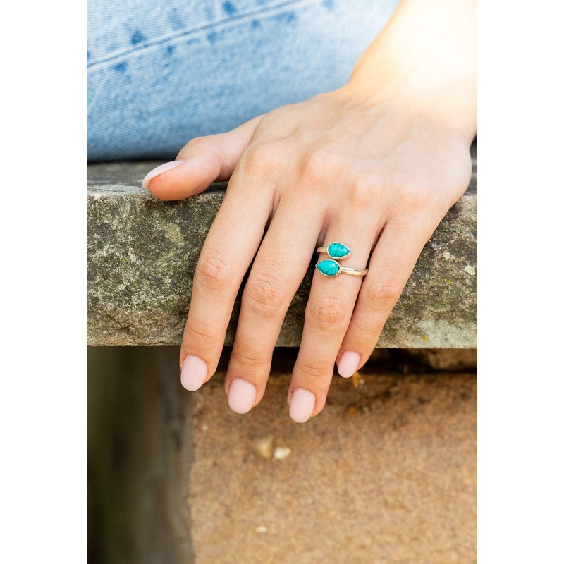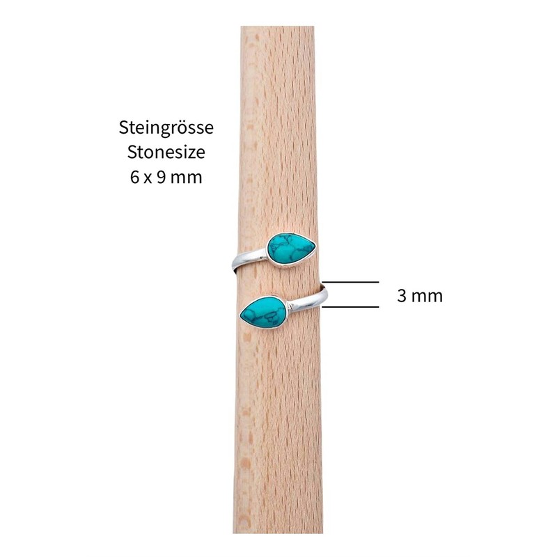 - Material: 925 sterling silver; gemstone: turquoise; cabochon cut; stone size: 6 x 9 mm; ring size: adjustable; colour: turquoise; stone shape: drops; style: plain; comes in a small cloth bag