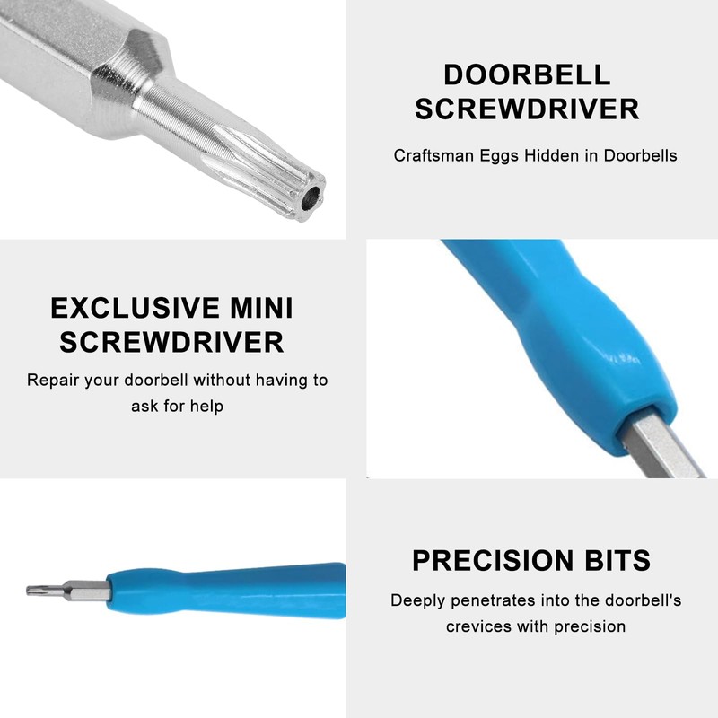 - Design: This screwdriver set with a blue handle comes with original screws, making it easy to replace batteries and perform maintenance. It features a high-hardness, high-magnetic bit, making it suitable for video doorbells. Perfect for Ring Doorbell Screws.
