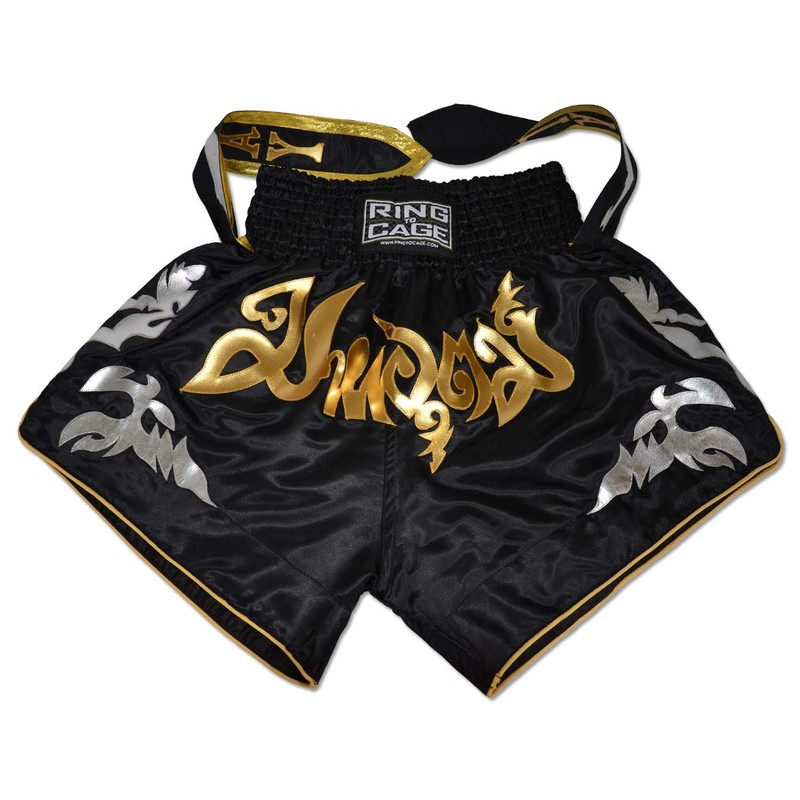 Ring to Cage Gladiator Muay Thai Shorts (Medium) Black/Gold