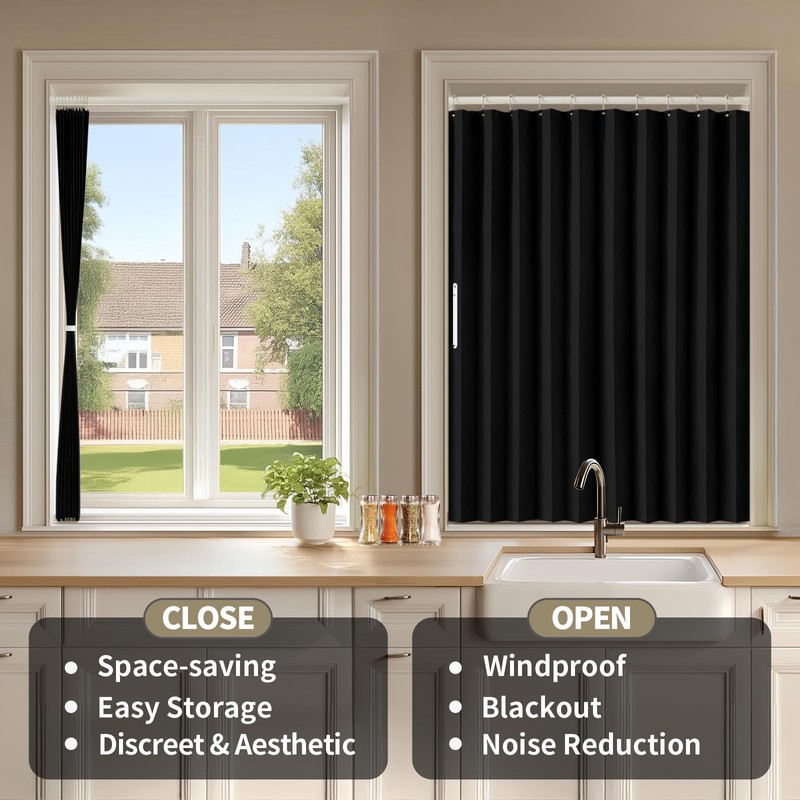 - Magnetic closing mechanism: Our Rinhartex Blackout accordion curtain is equipped with 4 magnetic buckle, which can be easily folded and firmly maintained closed, simple and fast to achieve the opening and closing of the door curtain, preventing drafts, insects, and dust from entering your room. It provides a convenient and hassle-free experience, allowing you to easily pass through while maintaining a tight seal.