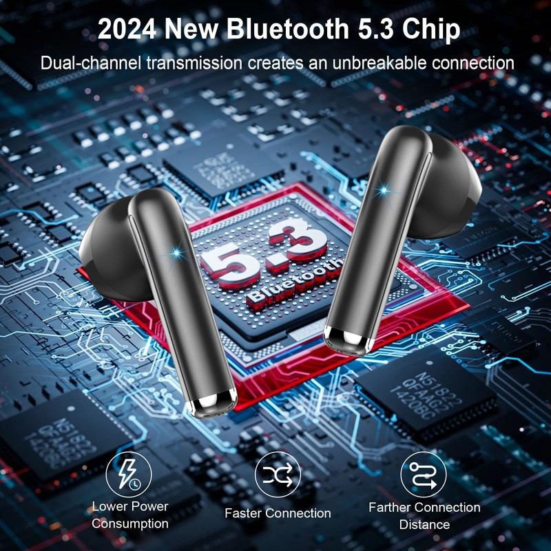 - Bluetooth 5.3, automatic pairing: The wireless headphones is equipped with Bluetooth 5.3 chip and supports protocols such as HSP, HFP, A2DP and AVRCP. Compared with Bluetooth 5.2, the transmission speed is faster and more stable, with a latency of (70-80ms). It is easily compatible with iOS and Android smartphones, computers and laptops. In addition, the headphones wireless connect automatically when you remove them from the charging case after pairing the device for the first time.